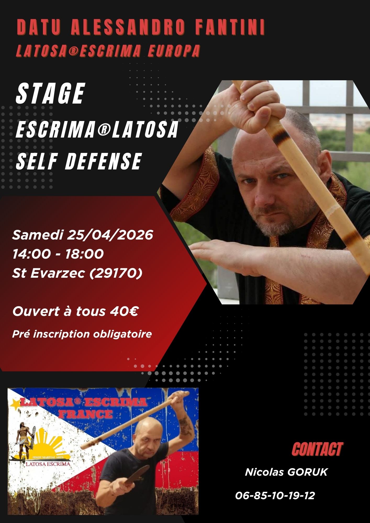Samedi 25 avril 2026 stage de self défense escrima Latosa Pré-inscription obligatoire