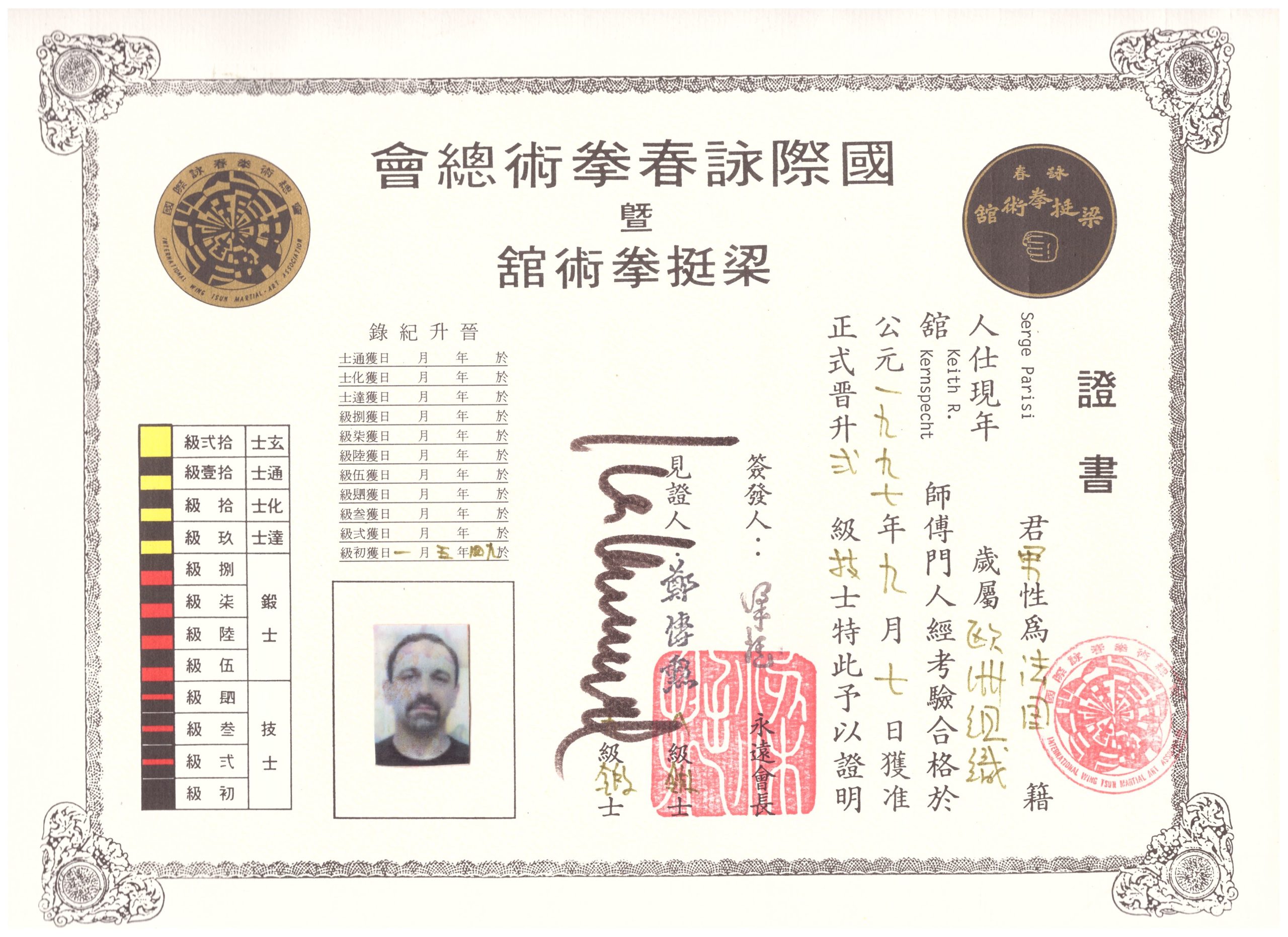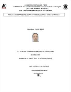 Expert fédéral, juge fédéral et professeur 8ème duan à la fédération FWDA; il enseigne le Wing Tsun (boxe chinoise) et l’Escrima (système Latosa) depuis 1989 ainsi que le Taïchi (styles Chen, Yang, Wu) depuis 2000.